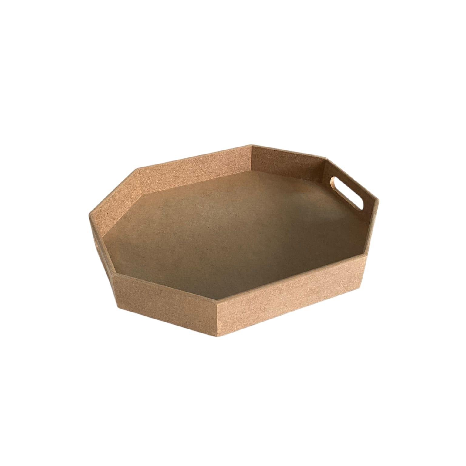 Küçük Sekiz Kenarlı Tepsi, MDF malzemeden üretilmiş, boyanabilir yüzeyiyle dekoratif hobi çalışmalarına uygundur.