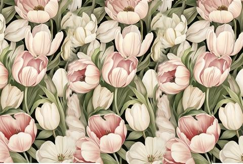 Zarif pembe lalelerle tasarlanmış büyük boy pirinç kâğıdı, dekoratif çalışmalarınıza romantik ve doğal bir hava katar.